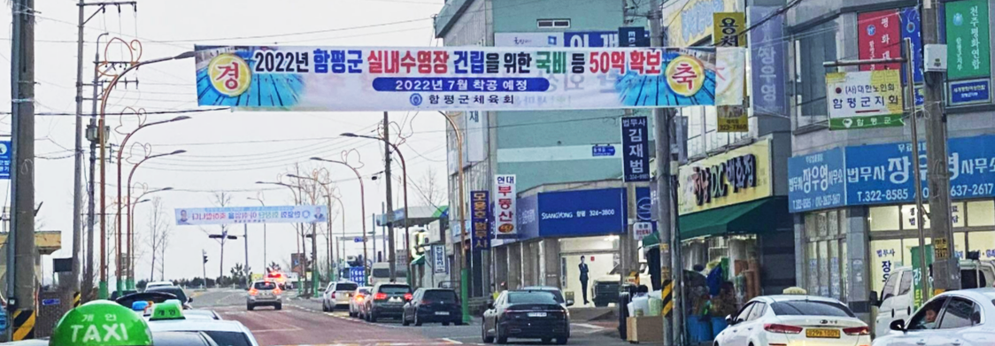 아래는 작년 말 전남 함평군 함평읍내에 걸려있던 축하현수막이다.