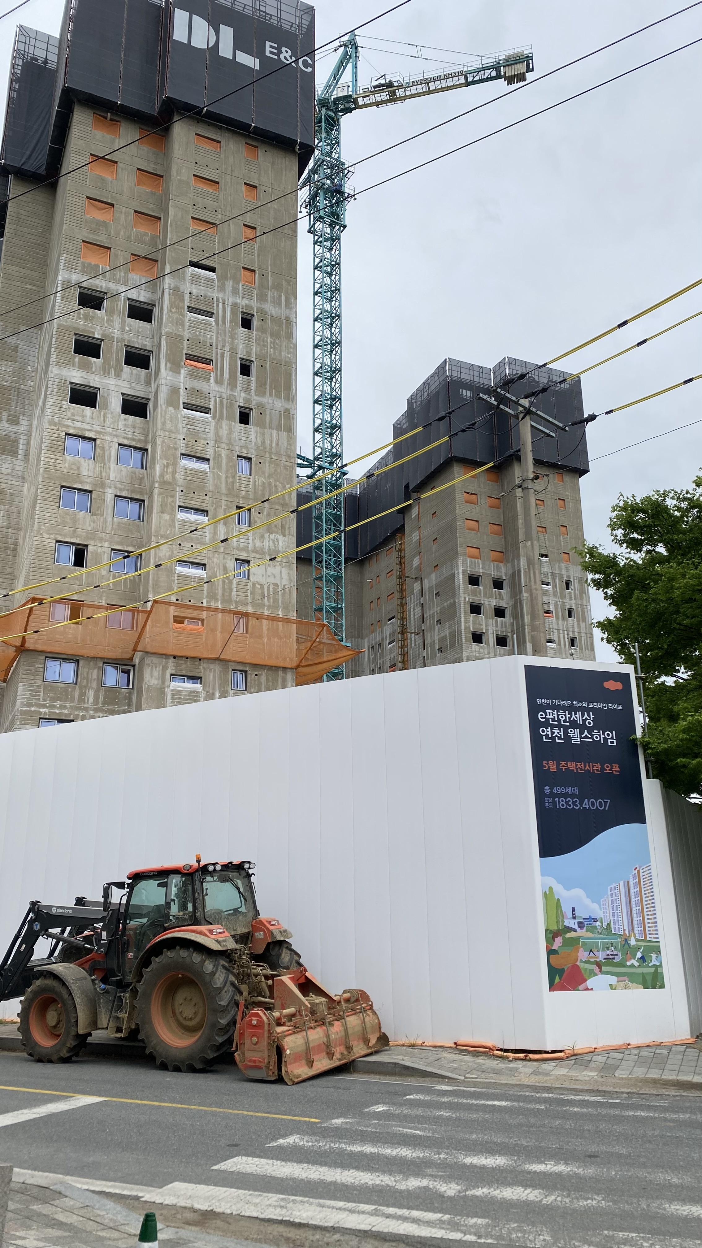 청소년수련관 옆으로는 2023년 준공 예정인 499세대 규모의 아파트 6개동의 공사가 한창이었다.