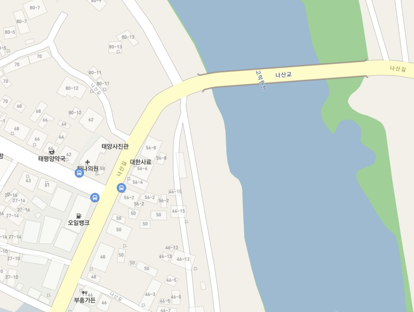※ 참고: 2021.12.15. 기준 나산교는 노후교량으로 철거 예정이라 차량 출입이 통제되고 있었다.