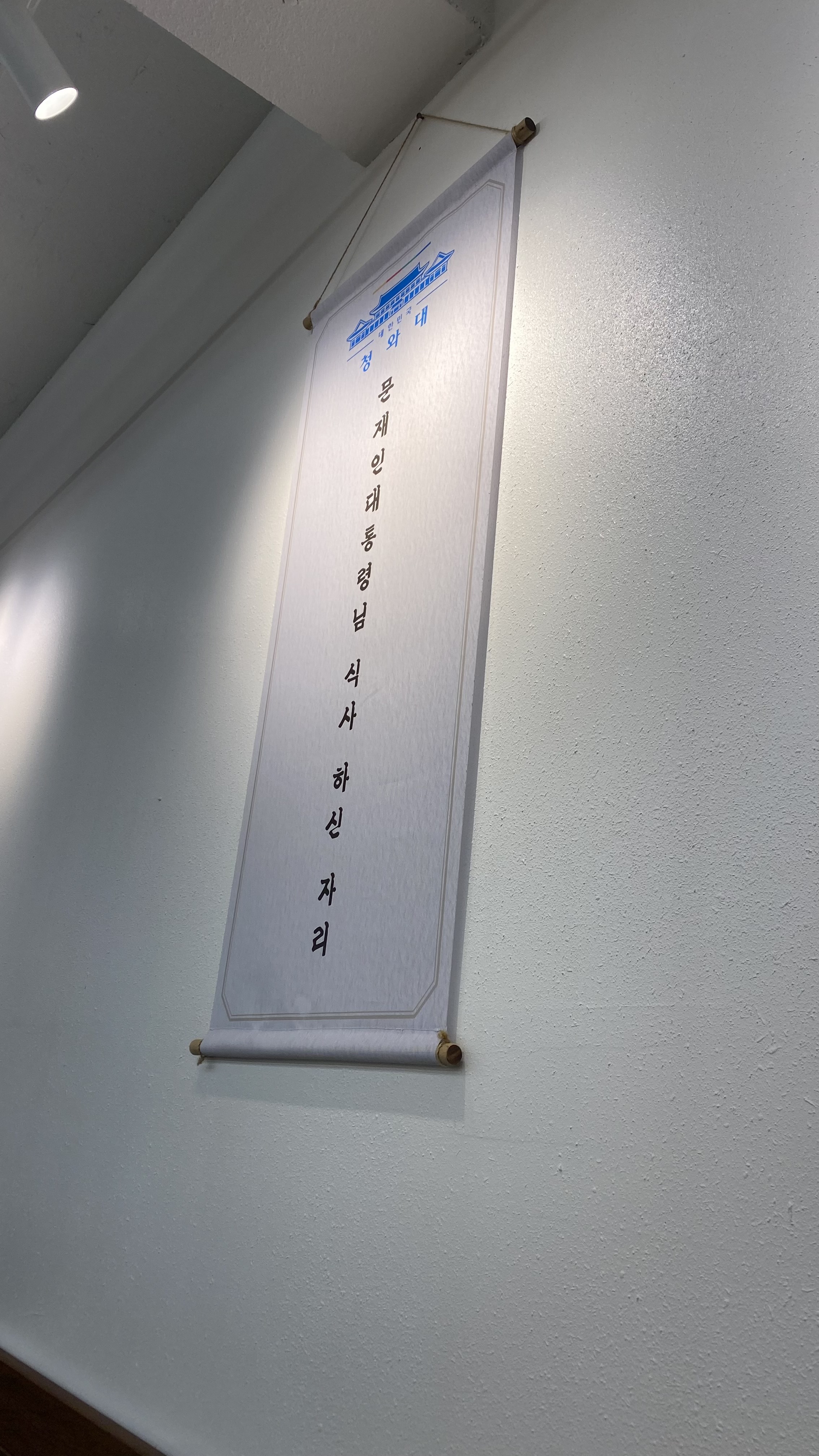 대통령이 앉았다는 자리에서 수육곰탕에 막걸리를 먹었다.