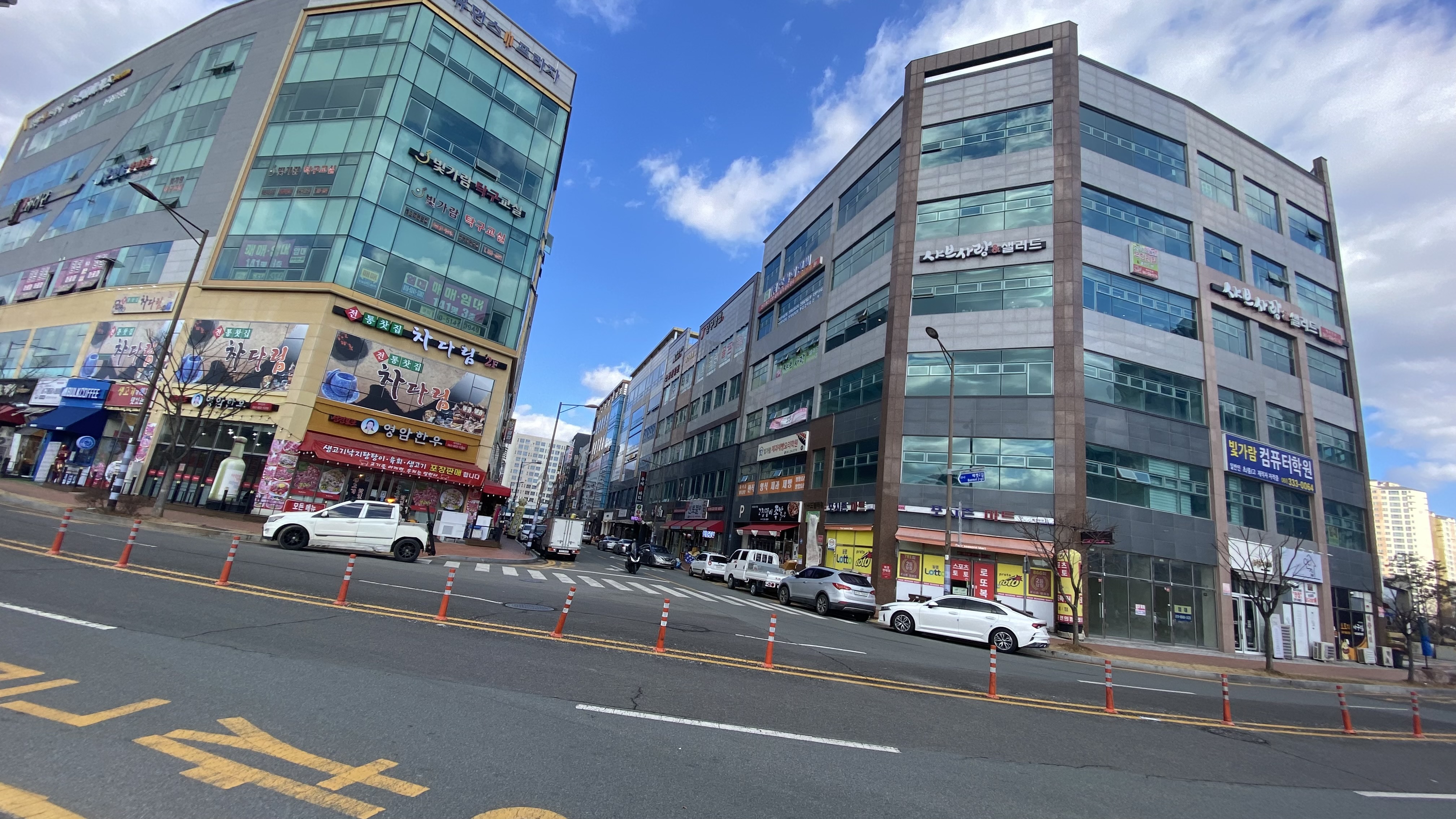 한 눈에 들어오지 않는 압도적인 크기의 건물들을 뚝뚝 지어놓는 것은 건설사의 이익과 관련된 걸까? 각종 상가니 오피스텔 건물들을 지어놓고나면 그 건물은 건설사의 소유가 되는 건가? 신도시 개발에 참여하는 건설사가 소수이기 때문에 한 필지에 이렇게 개성 없이 큰 건물을 독점적으로 연이어 지을 수 있는 건가? 도시계획와 건설사들의 이해관계에 대해 좀 더 찾아봐야겠다.