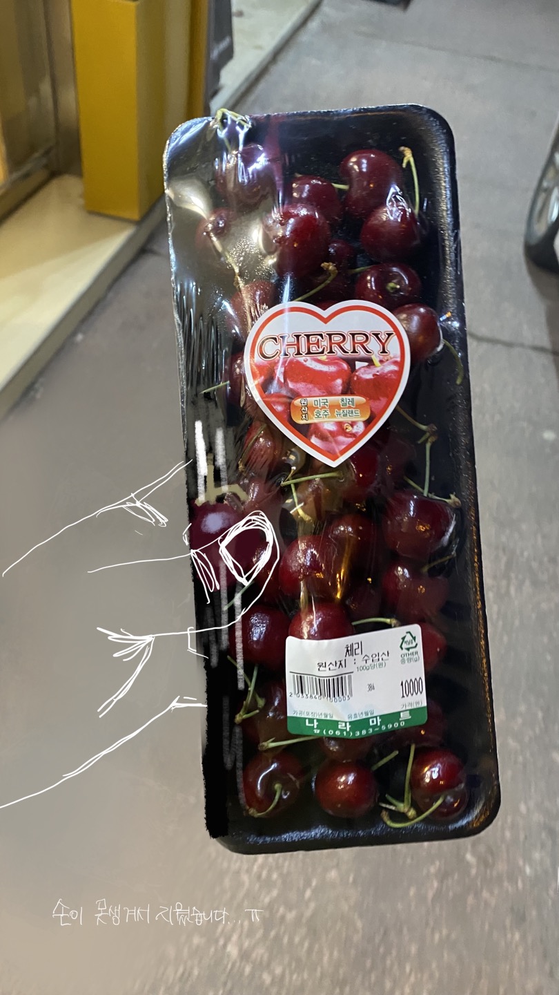 중앙로에 있는 마트에서 간식으로 체리 한 팩 사서 팔랑팔랑 돌아다니기 ㅋㅋ